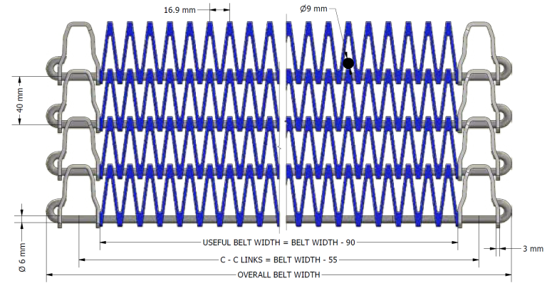 - These belts use a revolutionary cross rod design that has no welding. The rods are bent at the ends in a special process, providing a smoother, more reliable surface across the drum.