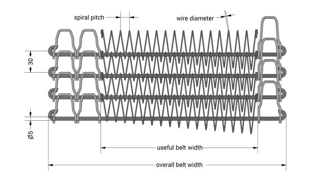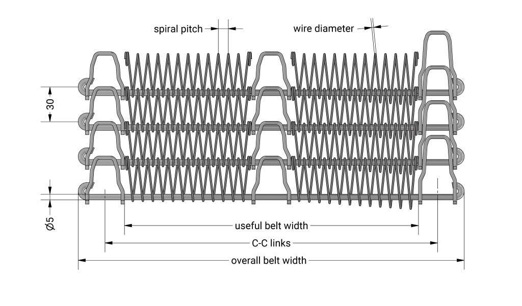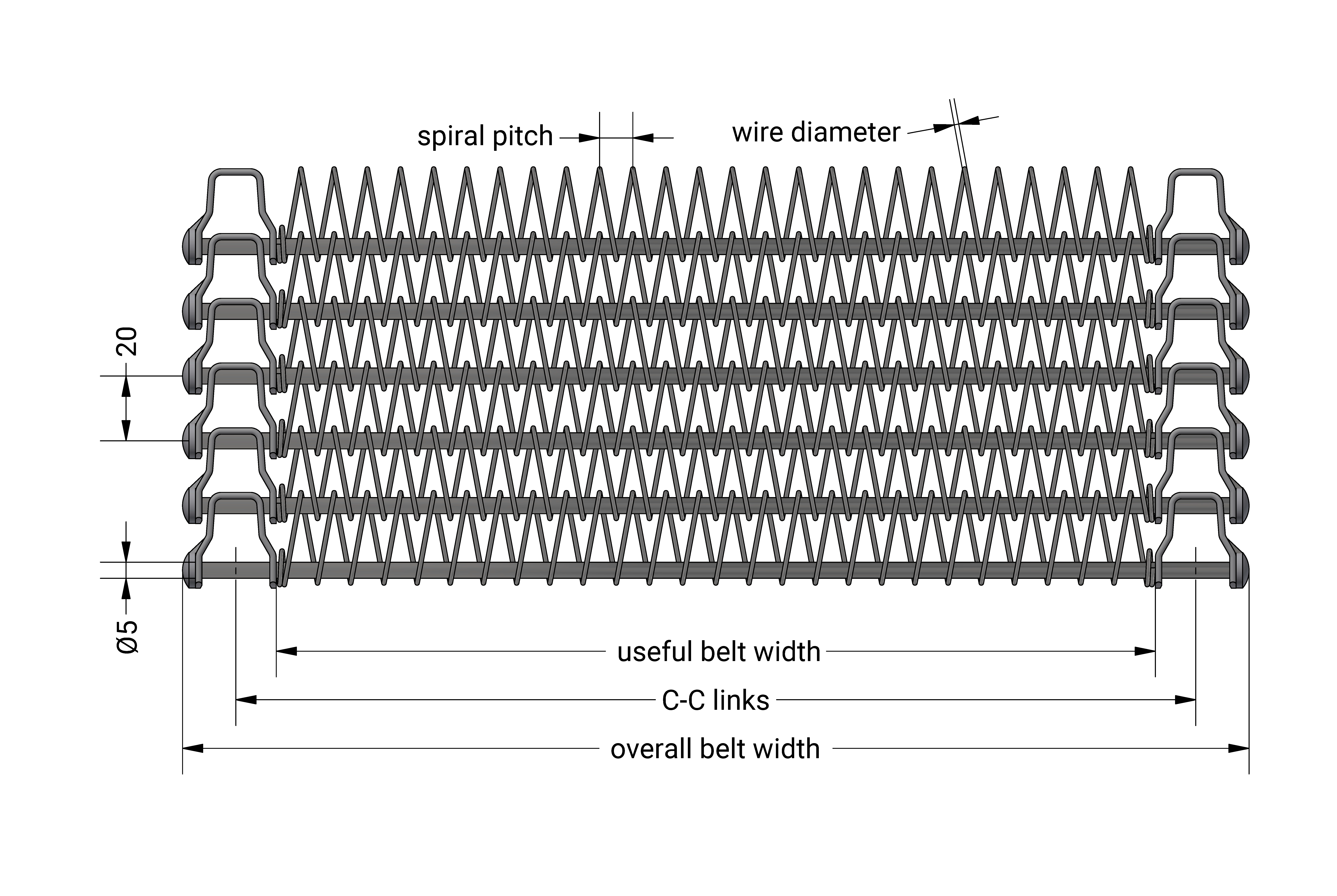 Wire mesh belts are manufactured from 302 or 316 SS providing a hygienic solution suitable for raw food handling.