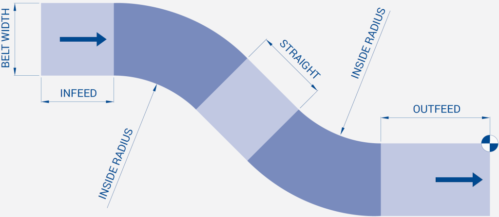 - 1.6, 2.2, 2.5- and 2.8-times belt width radius on bends.