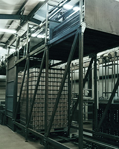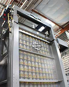 Z-Grip lowerators are an efficient way to safety decline your glass bottles/jars, plastic containers, aluminium and steel cans from high elevations. The small footprint saves valuable indoor space and the tool-less adjustability makes line changeovers quick and easy. Elevation heights for containers entering side-grip (top) and discharging (bottom) are built to customer specifications. Ska Fab offers mini z-grip lowerators for aluminium cans.